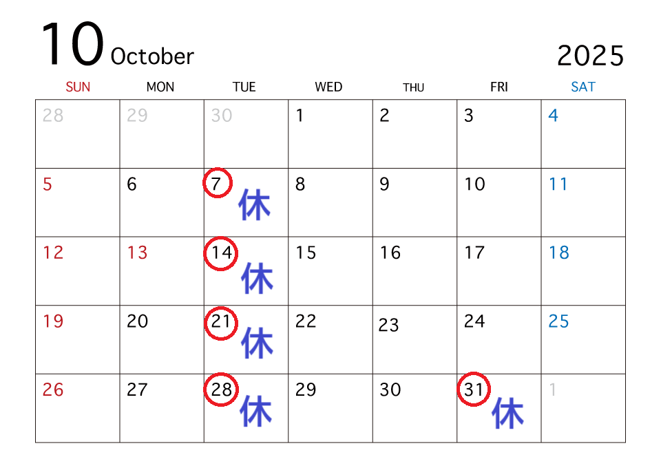 10月の店休日 10月の店休日が決まりました。ご予約の際は参考にどうぞ。なお、臨時店休日が発生する場合はフェイスブックにて告知しております。可能な方はそちらのフォローもよろしくお願いします。 フェイスブックページ